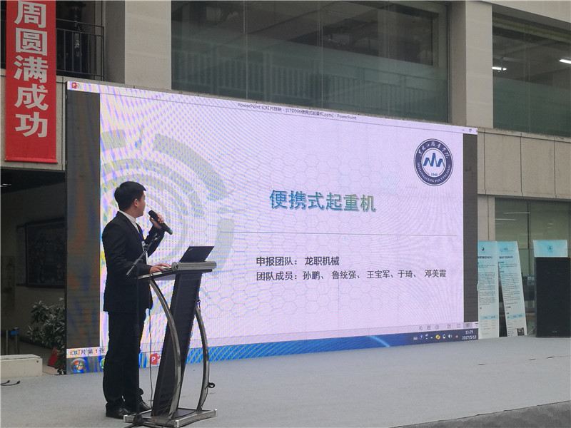 全国共有21个省、市、自治区的81所高校报名参赛,共申报1168个作品。经过专家盲评初审,共有341个作品入围决赛。在决赛中,金年会“龙职机械”团队由孙鹏、王宝军、于琦、鲁统强、邓美霞组成,他们在决赛中展示“龙职”学子过硬的专业技能和丰富的创新精神,其“便携式起重机”项目获得创业组三等奖的好成绩。