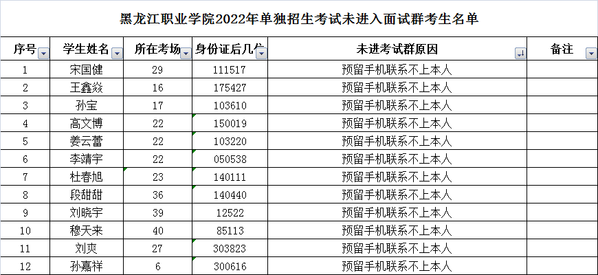 现无法与以下报考金年会2022年单独招生考生取得联系,请以下考生看到信息后速与金年会联系,否则,视为自动放弃考试资格。